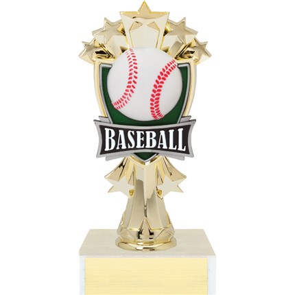 With a star-studded baseball rising up from the field, recognize your achievers with this baseball trophy that will remind the team of their most memorable season for years to come.
