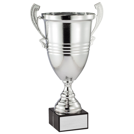 Our DTC57 SERIES - FULL-METAL CUP can make your players surprised with its beauty. This silver trophy has beautiful round lines on its body. Moreover, ornate handles are crafted beautifully. You can choose it for champions of different sports. Your local champions will be surprised with its first look. Buy this trophy in three different sizes for the top three players. A silver plate is providing enough room for personalization.