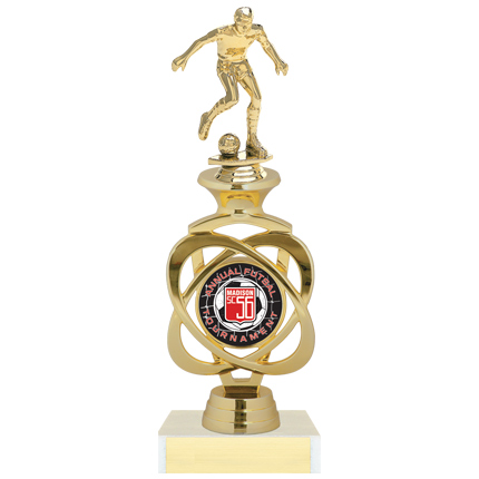 The product features a SOCCER TROPHY - NUCLEUS SERIES - MALE. We are providing you an ideal way to acknowledge the efforts of hardworking sportsmen in the form of this glittery motion figure Soccer Trophy for males, from our Nucleus Series. This fancy trophy can be used as a gift for Soccer lovers as a recognition of their work, and as a distinction at your workplace. The product comes with the personalized engraved plate attached to its bottom which can help make any player feel special.