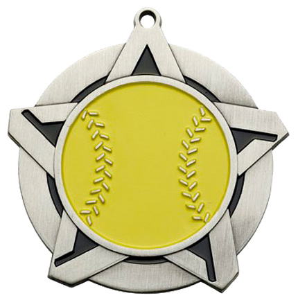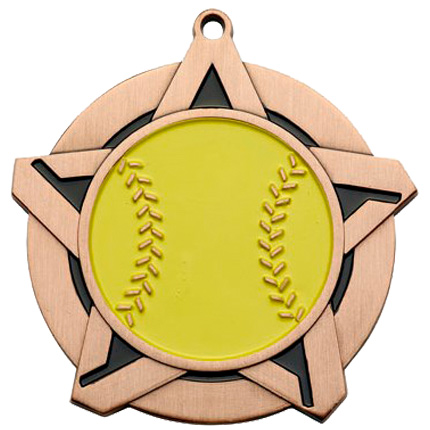 Our Super Star Series – Softball medal is one of the finest offerings we have in this category. Its beautiful 3D design features an intricately designed star on top of a round base. The color contrast looks amazing with a perfect mix of gold, silver, and bronze with black. The space for the center insert has been occupied by a bright yellow ball with a beautiful seam engraved on it. Take advantage of the customization options we have on offer to get medals that meet your expectations.